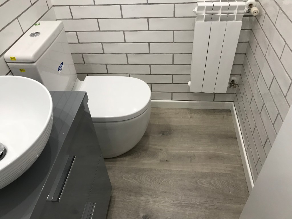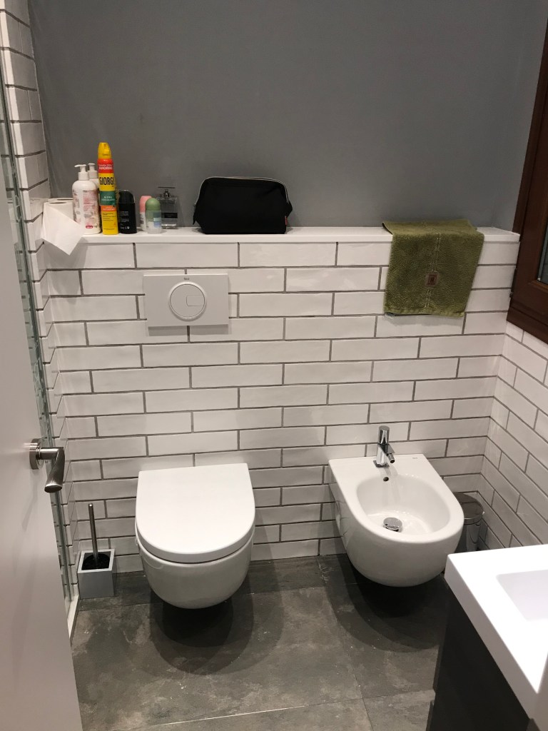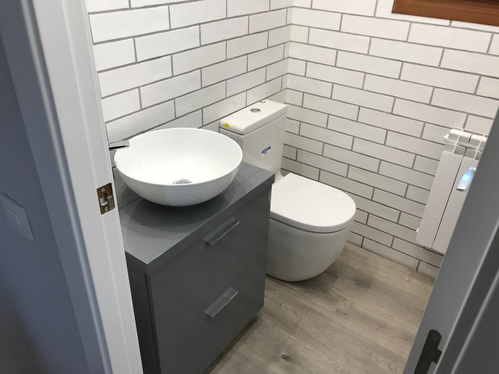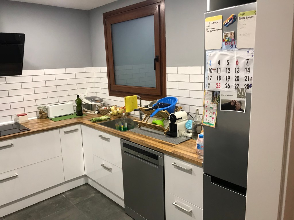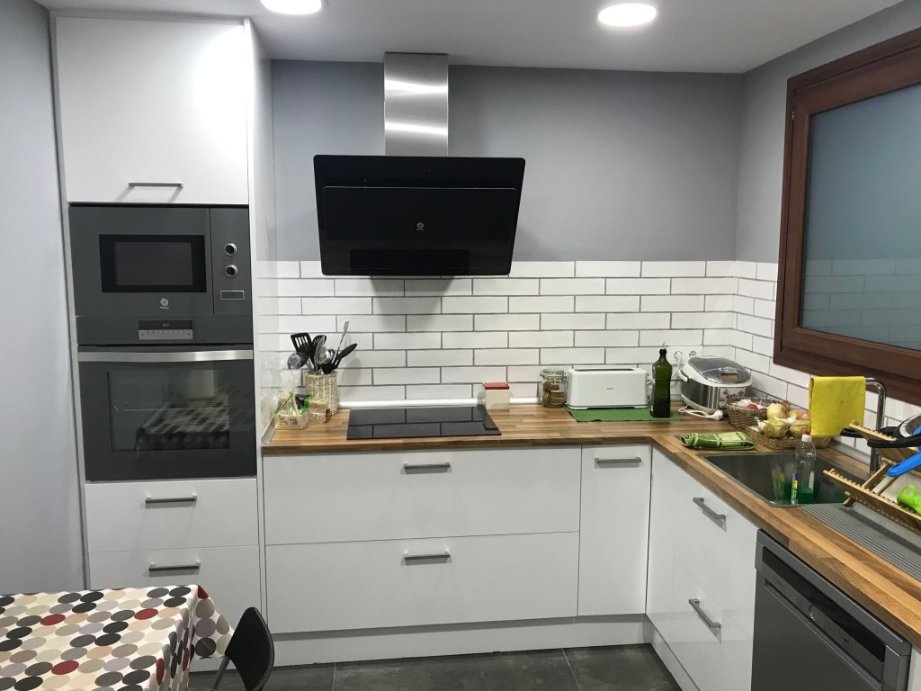 En esta obra ubicada en Avinyonet, nuestros clientes eran muy fan de la balsosa de metro, pues la pusieron tanto en los baños como en la cocina y con borada oscura para la cocina y borada blanca para el aseo. Fíjate que bien queda.