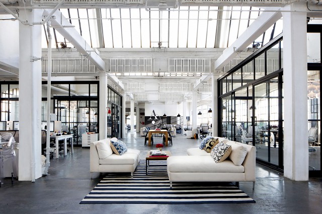 Pero además de las mamparas de baño, la perfilería negra de aluminio está de moda también en ventanas, ventanales y separaciones de oficinas. La directora de cine Nancy Meyers, nos lo hace constar en algunas de sus películas:, como la de las fotos del ejemplo: El Becario.