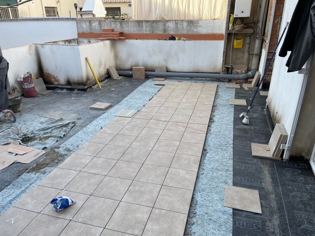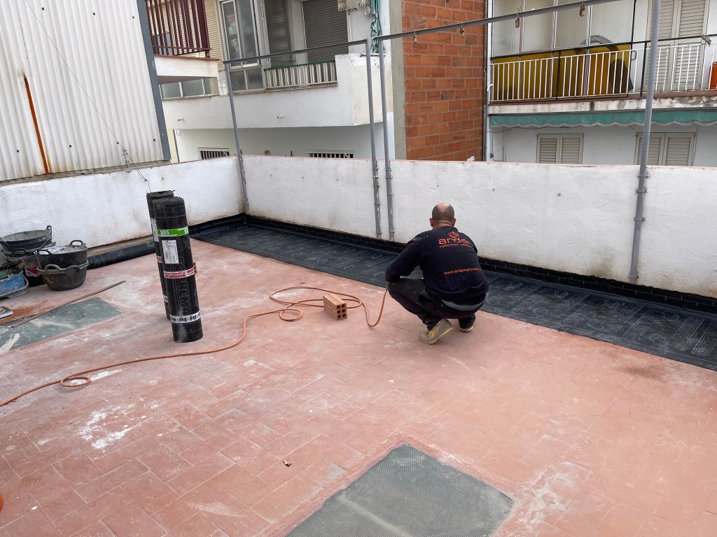 Os mostramos varias fotos de una reforma que hicimos donde se puso nuevo pavimento en toda una terraza y además se impermeabilizó mediante esta técnica.