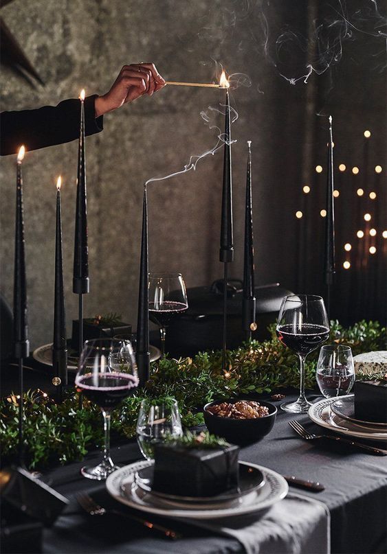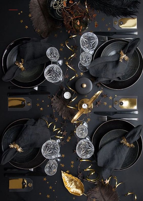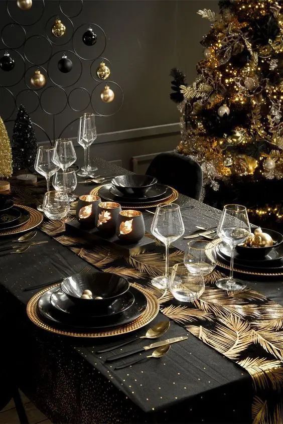 Esta tendencia TOTAL BLACK también nos está sorprendiendo mucho en este tipo de decoración. Este año hemos visto en Pinterest numerosas decoraciones de mesas de Navidad dónde el negro y el dorado son los principales protagonistas. No sabemos si parte de esta tendencia podría venir de la popular serie de Miércoles que hace poco se estrenó en Netflix y lo está petando con su baile en Tik Tok, pero lo cierto es que, todo lo negro y siniestro están muy de moda.