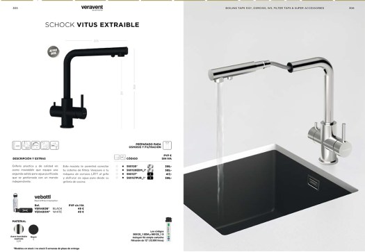 Escudero Disseny recomienda el modelo de grifo Schock Vitus de Veravent para cocina por que ya está preparado para osmosis, es extraíble y tiene un diseño muy elegante. Tienes además la opción de negro mate, color de actual tendencia.