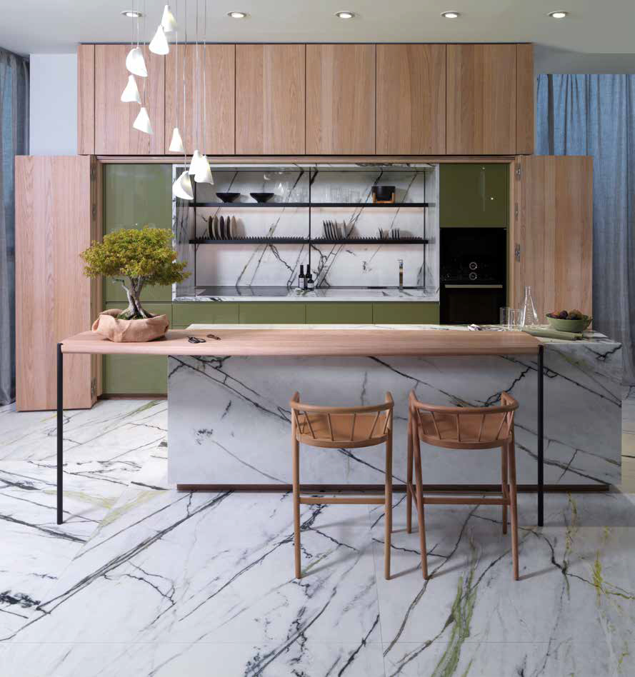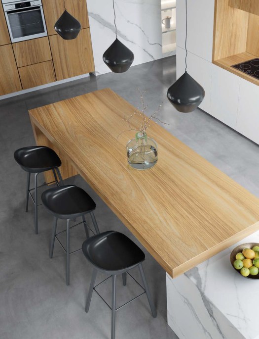 La belleza de las piedras naturales estará presente en los materiales sinterizados y porcelánicos que imitan su acabado. Hablamos de las piedras sinterizadas, por ejemplo, o nuevos porcelánicos creados con materiales naturales y acabados sorprendentes. Aportan durabilidad, versatilidad, diseño y modernidad. La piedra sinterizada, por sus cualidades técnicas –impermeable, resistente al rayado y las altas temperaturas, fácil de limpiar–, es un material perfecto para la cocina.