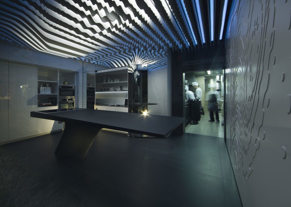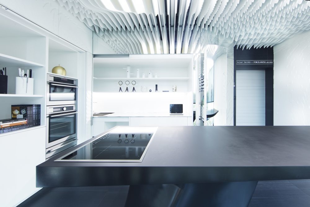 El Studio de Creatividad surge del concepto gastronómico “Los paisajes de Dacosta” por el cual el propio chef extiende su ámbito de acción en mesa, techos y paredes. La idea es fusionar objetos hasta hacer desaparecer las fronteras entre espacio, función y decoración. En este punto aparece Porcelanosa Kitchens, que toma el guante lanzado por Quique Dacosta y plasma la cocina diseñada por el chef.