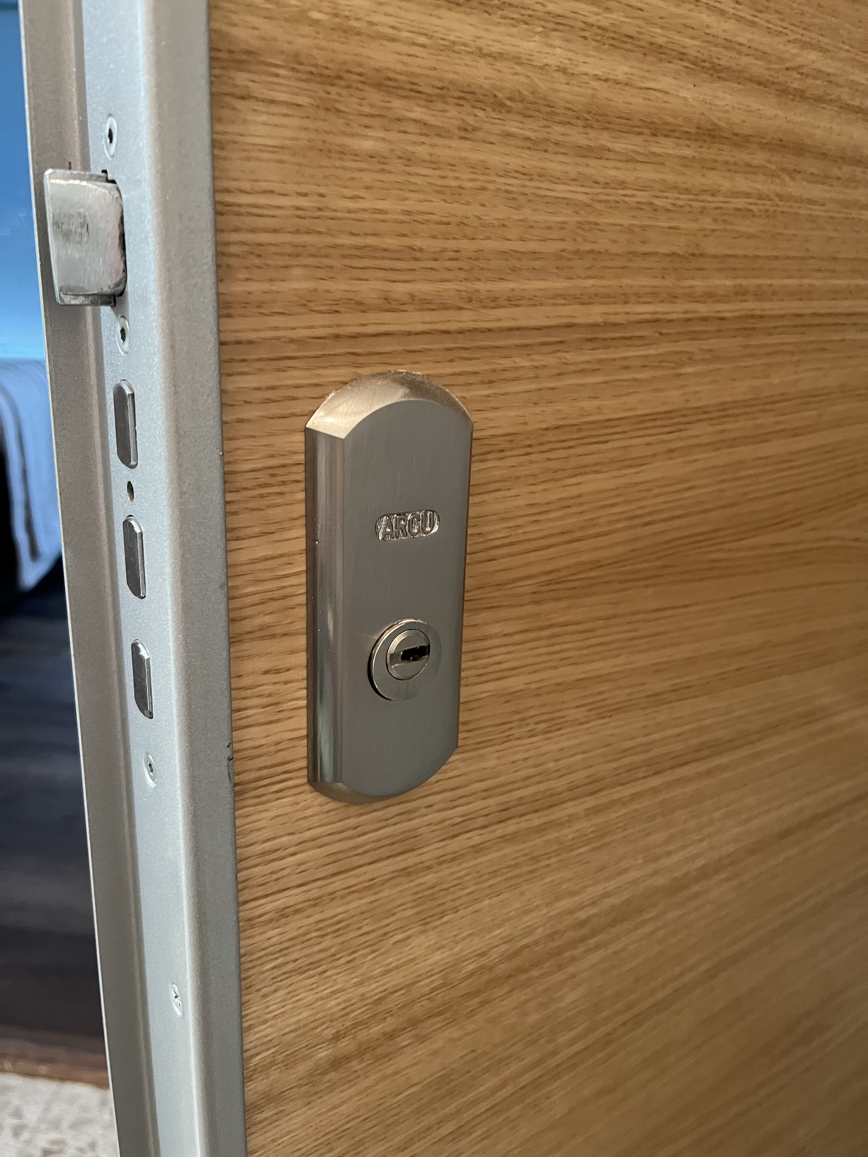 Puerta de entrada. Elige un modelo acorazado o blindado. Y si no, puedes poner cerraduras de seguridad con varios puntos de cierre (los expertos aconsejan un mínimo de 2 para garantizar una óptima seguridad) y también instalar mirillas digitales o bombines especiales; incluso apostar por las cerraduras inteligentes que te permiten abrir y cerrar la puerta de forma remota y, además, actúan como alarma porque si ésta se abre inesperadamente, te avisará rápido.