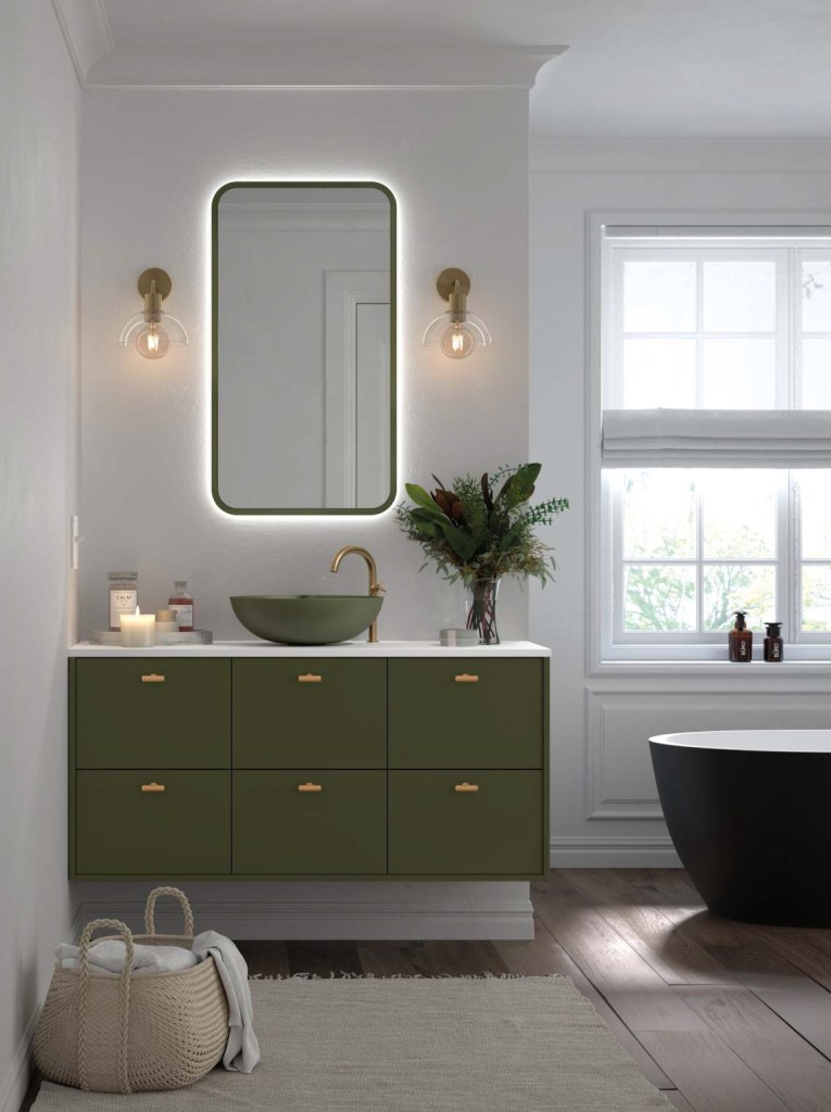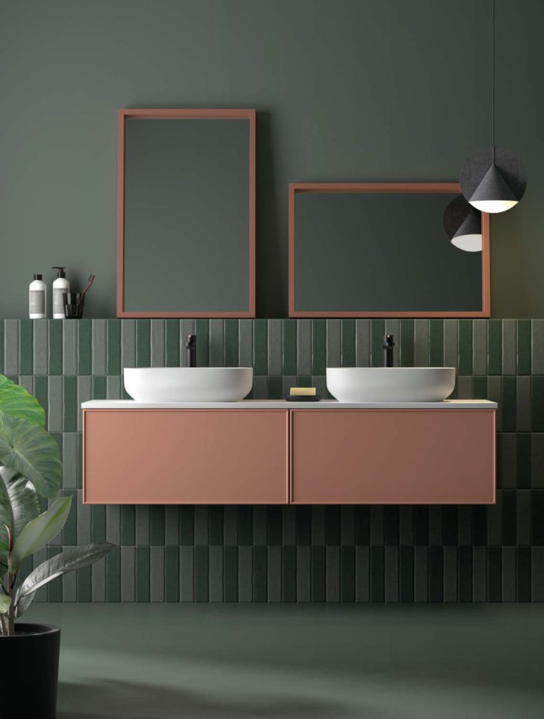 El dorado en combinación con estos colores; salmón, verde y blanco siguen siendo tendencia también para este 2024. Os mostramos estos 3 muebles de baño de la marca CODIS de su nuevo catálogo.