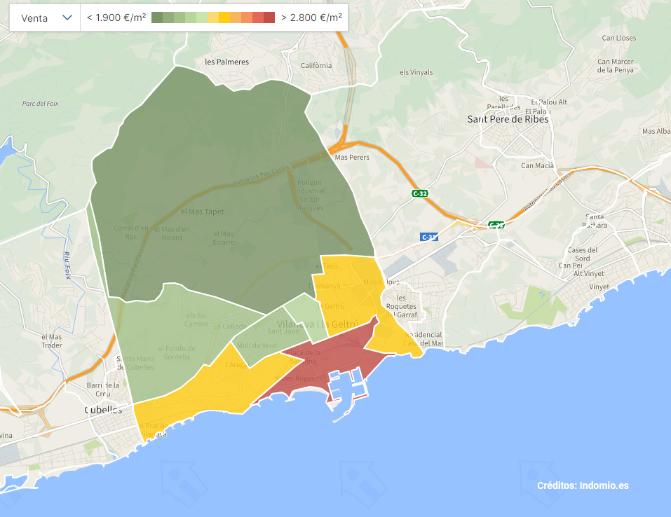 Precios por metro cuadrado en las zonas de Vilanova i la Geltrú
