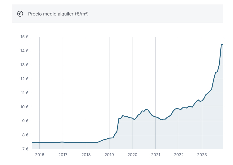 PRECIO MEDIA ALQUILER (€/m2 en VNG)