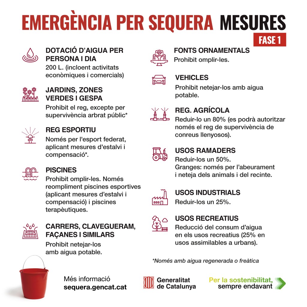 La emergencia en el sistema Ter-Llobregat, el que abastece a la mayoría de la población, entró en vigor el pasado viernes 2 de febrero del 2024. Se trata de la peor fase que estipula el Plan Especial de Sequía (PES) y en la que se aplican las restricciones más severas para la industria, la agricultura y el consumo doméstico de los hogares.