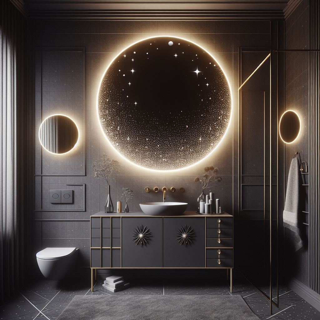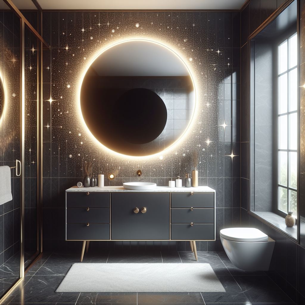 Hemos visto en las redes sociales imágenes impactantes de este fenómeno del que hoy todavía se sigue hablando en todos los medios de comunicación. Y en vista de la gran expectación que está creando la eclipsemanía, nos hemos atrevido a llevar esta tendencia al mundo de la decoración en baños. Fíjate que ideas hemos creado gracias a la Inteligencia artificial.