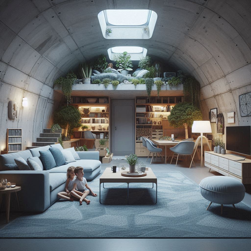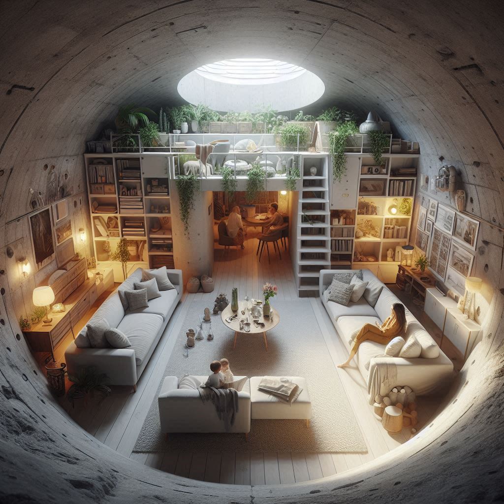 Hoy, mientras me tomaba el café, se me ha ocurrido esta ida de olla, aunque no sé yo si no sería una buenísima idea; la de crear un hogar dentro de un bunker, como el de las imágenes que aquí te muestro y que he creado con Inteligencia artificial.