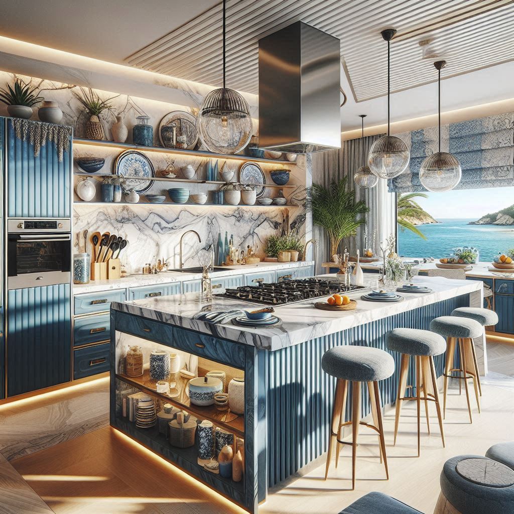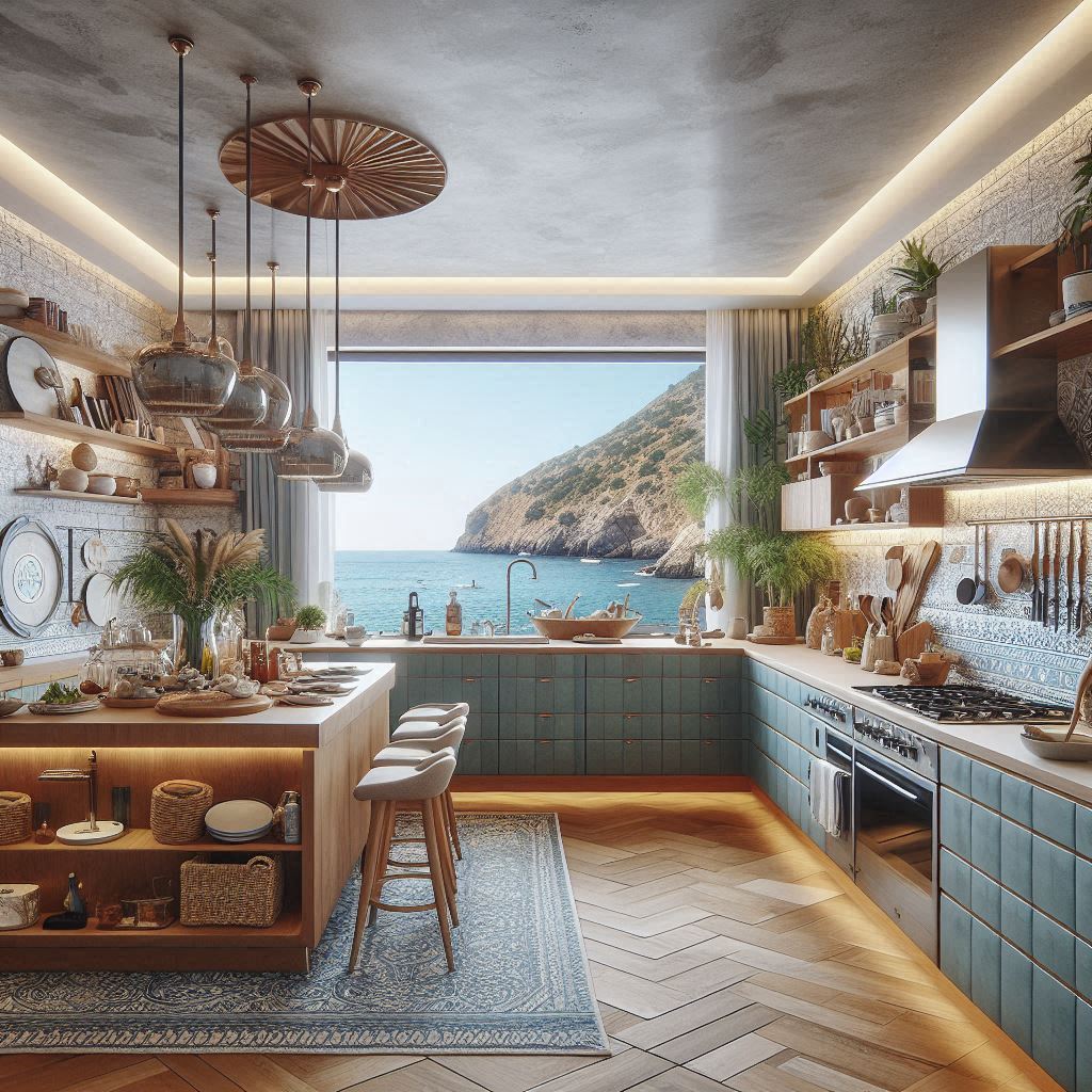 Aquí os mostramos unas imágenes muy creativas para aquellos que sueñan con una cocina cerca del mar. Ideas creadas con IA, pero que con un poquito de diseño en 3D por parte de nuestro Project Manager y algunos ajustes en el espacio y buena dosis de creatividad, pueda ser la cocina de vuestros sueños.